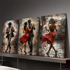 Ensemble de trois toiles encadrées représentant un couple dansant le tango