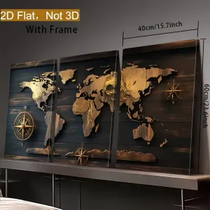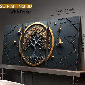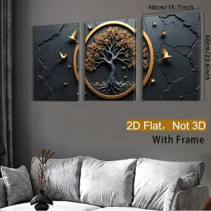 Lot de 3 tableaux décoratifs 2D à plat, art haut de gamme, avec cadre en résine