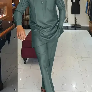 Ensemble 2 pièces Dashiki africain à manches longues pour homme