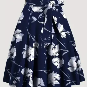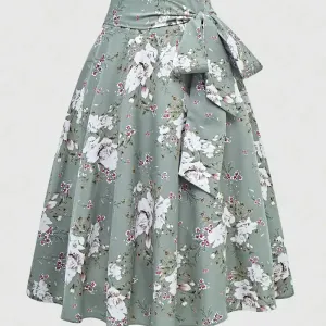 Jupes à imprimé floral vintage, jupes plissées élégantes à taille nouée