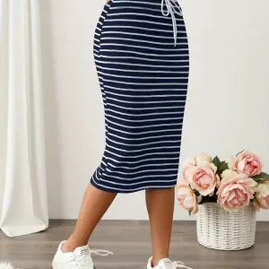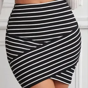 Jupe crayon rayée, jupe décontractée élégante