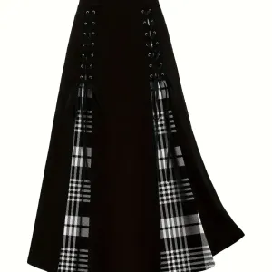 Jupe mi-longue élégante à carreaux pour femme