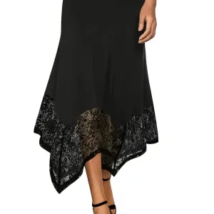 Jupe mi-longue élégante taille haute avec ourlet en dentelle