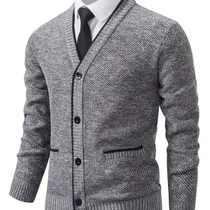 Cardigan en maille pour homme - Pull boutonné à col en V