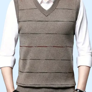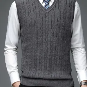 Gilet en maille sans manches à col en V et coupe ajustée pour homme